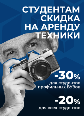 - –30% студентам и аспирантам киновузов, киношкол, а также вузов художественной направленности.
