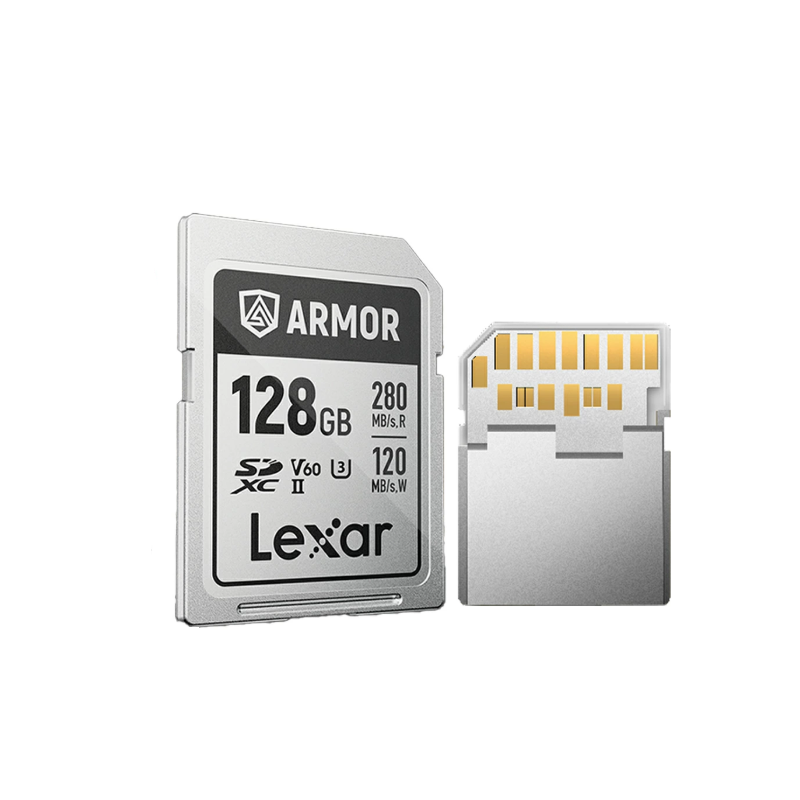 Карта памяти Lexar Armor - представляет собой защищенный носитель стандарта SDXC UHS-II, предназначенный для работы в экстремальных условиях. Основной конструктивной особенностью серии является корпус, выполненный из нержавеющей стали 316. Такая конструкция обеспечивает устойчивость к изгибу (выдерживает нагрузку до 370 Н), что в несколько раз превышает показатели стандартных пластиковых карт.