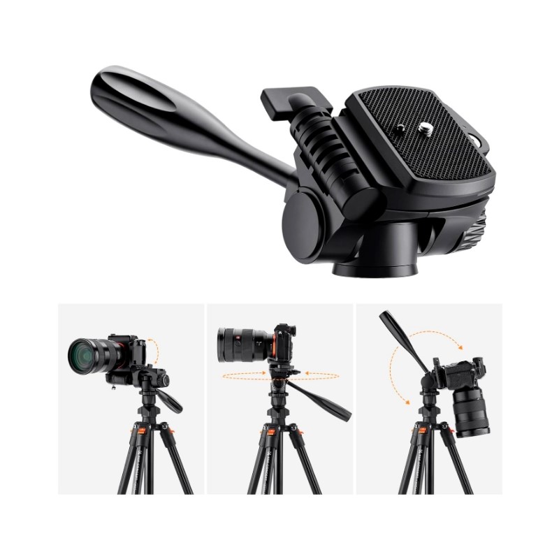Безопасная нагрузка – 3 кг. 2D головка позволяет наклонять камеру вперед и назад, вращать на все 360°, а также откидывать в сторону для съемки с вертикальной ориентацией кадра. Головка является съемной, ее можно заменить на другую, крепление стандартное: винт 3/8".
