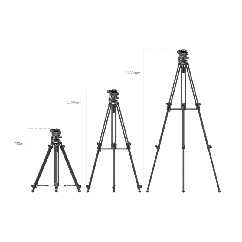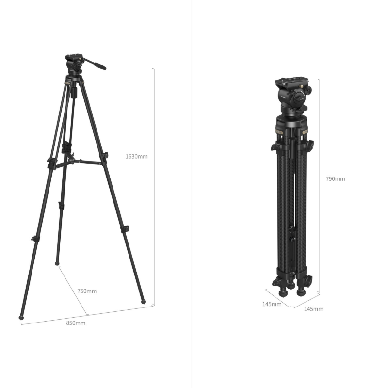Штатив SmallRig AD-50 Carbon Fiber - Ноги штатива изготовлены из износостойкого алюминия, что обеспечивает стабильность, а также минимизирует вес, который составляет всего 2.8 кг. Распорка позволяет быстро поднять центр штатива, уменьшая занимаемое им пространство. Максимальная рабочая высота составляет 163 см, а в сложенном виде достигает 79 см.